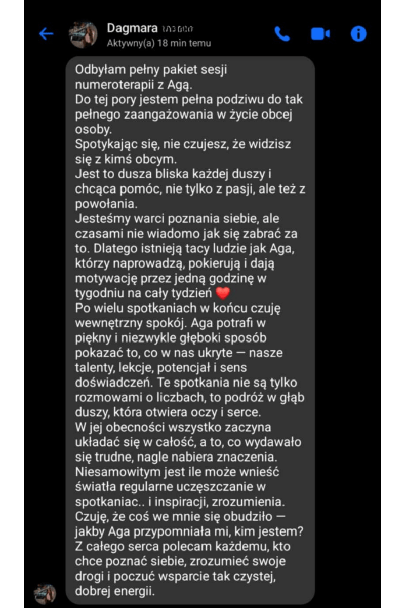W połączeniu z Numerologią i narzędziami pracy z podświadomością takimi jak Numeroterapia, Channeling czy Kroniki Akaszy, zaczęłam rozumieć źródła swoich blokad i ograniczeń oraz nawiązywać głęboką więź z moim Wyższym Ja.